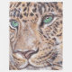 Une pose paisible d'un léopard qui regarde rêveusement au loin. Ses yeux sont verts au lieu de la couleur jaune habituelle. Sa bouche fermée est détendue. La créature gardienne parfaite pour se sentir protégée en toute sécurité pendant le sommeil. Reproduction d'un dessin au crayon coloré de l'artiste Joyce Jackson.
