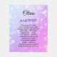 Jolie personnalisation Février Birthstone Amethyst design Fleece Blanket cadeau. Poem décrit les propriétés métaphysiques associées au cristal d'Améthyste.