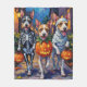 Les courriers en fil rouge adorables habillés de costumes d'Halloween ludiques portent des seaux citrouilles tout en faisant des tours ou en traitant sous le ciel illuminé par la lune. Ce design festif met en valeur le manteau, l’expression d’alerte et la personnalité énergique de la race, capturant parfaitement l’atmosphère éffrayante et amusante de la nuit d’Halloween. Une célébration joyeuse et animée pour les amoureux de les chiens comme pour les fans d'Halloween.