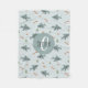 Cette couverture en toison mignonne et moderne pour enfants présente un motif de dessin animé de requin bleu, avec des mauvaises herbes, des bulles, des poissons et des requins, et peut être personnalisée avec votre nom de garçon et monogramme. L'ajout parfait sur le thème de l'océan à votre chambre d'enfants ou à votre petite garderie.