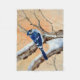 Le geai bleu au coucher du soleil est d'une peinture à l'huile originale par Brenda Thour d'un beau geai bleu été perché dans un arbre couvert par neige avec un beau coucher du soleil de pêche. Photo de référence par Chris Lardy. Copyright 2014.