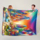 Cette couverture en toison a une scène de gratte-ciel dessus.