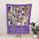 Elégante couverture de saké violet pour la meilleure grand-mère du monde avec "grand-mère" dans un script blanc élégant, un collage photo de 30 de sa famille et leurs noms dans la typographie blanche moderne.