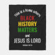 HISTOIRE NOIRE Élégante MAJORITÉS Couverture en toison chrétienne avec TEXTE PERSONNALISABLE. Le message dit : "C'est une maison où l'Histoire Noire compte et Jésus est Seigneur", qui est basé sur Galates 3. La référence biblique est PERSONNALISABLE, vous pouvez donc la remplacer par votre nom de famille ou autre texte. Cette couverture d'histoire noire serait idéale pour être exposée dans votre maison chrétienne ou dans vos locaux, surtout pendant le Mois de l'histoire noire.