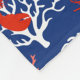 Une couverture côtière recouverte d'un motif de homards rouges et de corail blanc surplombant un arrière - plan bleu marine