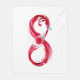 Infinity symbole of continuous stream of red pouring into glass glass glass on white background.