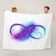 Infinity symbole with a beautiful feather painted in purple and blue bright colors on white background