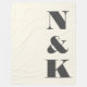 Couverture en molleton de mariage minimaliste moderne noir et crème avec monogramme pour jeunes mariés