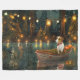 Jetez un coup d'oeil à la magie de la saison des Fêtes avec cette illustration magnifiquement détaillée, montrant un chien fier assis dans un bateau à la décoration festive, glissant à travers un lac serein de Noël. Les lumières scintillantes des pins voisins se reflètent dans l'eau, projetant une lumière chaude et festive qui renforce l'ambiance cosy. Des ornements pendent des côtés du bateau, tandis que des lanternes brillantes éclairent le chemin, créant une scène qui capture l'essence véritable de la chaleur et de la joie de Noël. Cette oeuvre nostalgique apporte une touche de magie de vacances à tout espace, parfait pour ceux qui chérissent l'esprit de la saison.