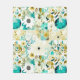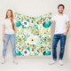 Couverture Polaire Joli Art folklorique Fleurs blanches et turquoise