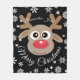 Amusez-vous à décorer la maison avec cette jolie couverture en toison de rennes de dessin animé. Personnalisez-le avec un nom ou votre propre texte ou laissez vide. "Joyeux Noël" peut aussi être laissé, changé ou laissé vide. Rennes de dessin avec nez brillant rouge sur un arrière - plan noir avec typographie en écriture blanche et flocons de neige. Si vous souhaitez personnaliser davantage, envoyez-moi un email et je serai heureux de vous aider. designsbykatz@gmail.com Happy Holidays!