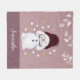 Cette couverture en toison rose présente un mignon bonhomme de neige qui profite de la neige. personnalisez cette couverture avec un nom.
