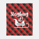 Laisser La Couverture De Ceinture De Feu De Noël. Noël tourne en l'abattant, couverture de Noël personnalisée. La police de caractères scénarisée indique "Sleighing it" avec l'illustration d'un traîneau vintage d'hiver contre un motif plaid noir, blanc et rouge et vert. Personnalisez-vous avec votre nom de famille pour un séjour parfait. Créé par © Lesruba Designs.