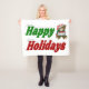 Couverture avec des vacances heureuses en texte vert et rouge 3D et un ours en peluche avec un cadeau. Disponible en plusieurs tailles.