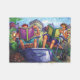 Art de la lecture estivale de Traci Van Wagoner présente un garçon et une fille assis dans un jardin urbain, les pieds dans un bain cool, en train de boire de la limonade et de lire des livres. Un chat et un chien s'allongent à leurs pieds sur le pont de bois. Parfait pour les amateurs de livres et de bibliophiles de tous âges.
