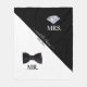 Un design élégant sur le thème du mariage en noir et blanc, parfait pour les jeunes mariés ou le cortège de la mariée. La couverture en polaire est conçue en noir et blanc avec un noeud papillon noir élégant pour le "M." et un magnifique diamant scintillant pour la "Mme". La date établie est située en haut et peut être personnalisée à votre date de mariage ou une date mémorable dans vos vies. Une police de caractère élégante est utilisée pour les noms de la mariée et du marié situés en bas. Personnalisez le texte et faites-en votre propre.