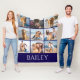 Modern dog photo collage personalized fleece blanket. Replace the photos with your own and change the text. 9 photo collage with pet's name on blue background.