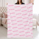 Make your own blanket with a custom name in modern minimalist typography repeating pattern on pink color background. A great gift idea for family and friends or personalized home or bedroom decor.