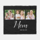 Celebrate motherhood in style with this Mom Established photo fleece blanket featuring elegant white script and space for three personalized photos. A heartfelt and practical gift for moms, this custom fleece blanket is perfect for everyday use.