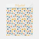 Cute blue, orange and yellow kawaii cats monogrammed name baby shower, new baby gift blanket 30x40 inches, or throw blanket size 50x60 inches, or twin bed size 60x80 inches.