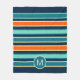 Couverture monogramme filetée en molleton à l'aide d'une palette de couleurs rétro bleu et orange classique. La couleur des bandes et du cercle monogrammé peut être changée.