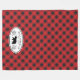 Une couverture en toison décorée d'un ours entre les feuillages est décorée d'un bison rouge et noir personnalisé. Faites-le le vôtre en ajoutant votre nom de famille et votre date de mariage. Idéal pour passer la nuit devant la télévision. Fait un grand cadeau mariage. Conçu pour vous par Blackberry Boulevard.