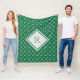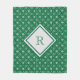 Un modèle de flocon de neige vert et blanc sur cette couverture en toison. Monogramme avec votre initiale. Disponible en trois tailles.