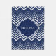 Elégant motif géométrique zigzag blanc, motif chevron cool avec arrière - plan bleu marine qui est personnalisable. monogramme personnalisé