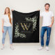 Couverture Polaire Monogramme Or Moderne De Fleurs De Feuillage Noir