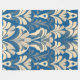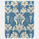 Un motif sans couture présente des motifs floraux stylisés dans les tons beige et crème contre un riche arrière - plan bleu. Le design symétrique évoque les influences Art Déco avec ses formes géométriques et ses détails complexes.