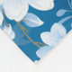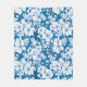 Couverture Polaire motif, fleurs blanches, arrière - plan bleu,