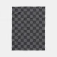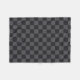 Cette couverture en toison monochrome foncé est ornée d'un motif moderne géométrique, d'un célèbre damier croate en noir et gris.