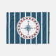 Design nautique avec décoration de boussole en forme ronde sur bleu et blanc rayé arrière - plan