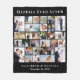 Une couverture en tenue noire personnalisée pour les jeunes mariés avec un collage photo de 30 de votre fiançailles, jour de mariage, fête de mariée, groomsmen, famille, lune de miel, etc., et "Heureusement toujours après", vos noms et date de mariage dans élégante typographie serif blanche. Les couleurs de l'arrière - plan et du texte peuvent être modifiées en modifiant l'outil de conception.