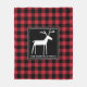 Un cerf blanc d'art folklorique est placé dans un cadre noir sur un motif de chèque rouge et noir Buffalo Plaid. Sous le cerf se trouve un exemple de texte qui dit actuellement, "La famille Westfield" que vous pouvez facilement réviser sur le modèle de personnalisation. Cette couverture en toison est idéale pour ajouter un aspect rustique à votre coin lecture ou pour ajouter de la couleur à votre décor de Noël.