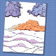 Une oeuvre d'art ludique et détaillée de nuages et de mer. Lignes expressives et fluides.