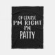 Couverture Polaire Of Course I'm Right, I'm Patty Novelty Humor