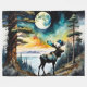 L'orignal de l'Alaska au clair de lune sur une crête de forêt surplombant l'océan IA Art généré par minx267