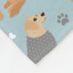 De mignons chiens Golden Retriever avec des manteaux foncés et légers s'assoient et se tiennent avec des os de chien éparpillés et des pawprints sur un arrière - plan bleu.