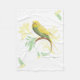 Pastel Green Parakeet aux motifs tourbillon et plumes sur une couverture.