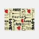 Paris design de texte pour la Saint-Valentin aux formes coeur rouge, Tour Eiffel et lampes de rue décoration arrière - plan jaune