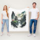 Une belle couverture en toison représentant une illustration manuscrite d'un paysage à l'architecture chinoise ancienne et aux cascades majestueuses.