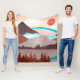Paysage de montagne en rouge et bleu avec un lac et un arc-en-ciel bleu gras.