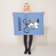 Pedal into personalized comfort and classic charm with this adorable blue fleece blanket, featuring Snoopy and Woodstock on a bicycle, ready for your custom touch! This soft and warm blanket showcases a delightful line-art illustration of Snoopy, wearing sunglasses, happily riding a vintage-style blue bicycle with Woodstock perched safely behind him. The dashed lines behind the back wheel suggest motion, adding to the playful scene, all set against a cheerful light blue background. Below the illustration, there's a space for a personalized name, allowing you to create a unique and special item for anyone. This iconic and heartwarming design brings a sense of nostalgic joy and timeless appeal. Perfect for snuggling on the couch, picnics, or as a thoughtful personalized gift, this blanket is a must-have for any Peanuts fan!