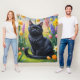 Couverture Polaire Peinture de fleurs de printemps de chats noirs