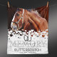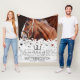 Élégante couverture de saké à cheval avec un arrière - plan moderne à motifs de coeur en marbre, une photo chère de votre cheval bien-aimé, des fers à cheval, le dicton "en mémoire d'amour", votre nom d'animal de compagnie, et des dates.
