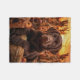 Profitez du charme rustique de l'automne avec notre superbe couverture présentant un adorable petit labrador au chocolat dans un champ de moisson alors que le soleil se couche dans l'arrière - plan.