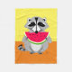 Joli raton laveur de caricature mangeant de la pastèque art de la faune dans le style contemporain, couleur arrière - plan peut être modifié pour convenir à n'importe quel décor de chambre