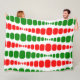 Cette grande couverture en toison a un design moderne du milieu du siècle de rectangles rouges et verts arrondis de taille croissante et décroissante qui tournent verticalement sur un champ de blanc.