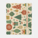 Cette couverture de vacances rouge et verte présente des motifs modernes du milieu du siècle, des formes géométriques, des étoiles atomiques, un design abstrait et des accents de pins. Idéal pour un décor élégant d'hiver et d'automne ou pour un séjour festif de saison.